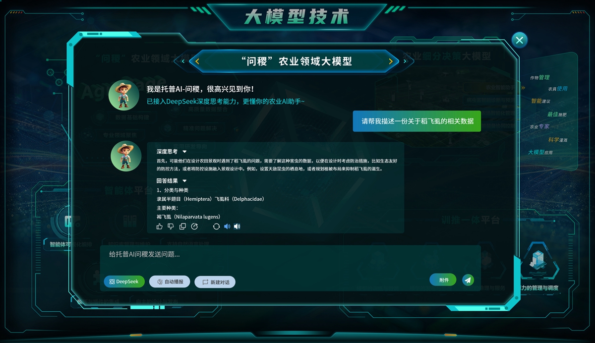 “问稷”将农业垂直大模型与通用大模型相结合,所引用的农业知识和案例都有据可查,从而解决DeepSeek可能出现的“幻觉”问题,确保数据准确,来源可靠。