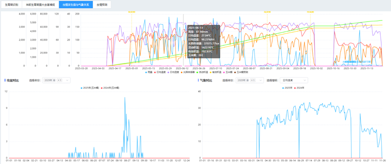 5、虫情-气象-作物生长联动分析:农业AI智能体深度整合作物生育期、气象环境及历史虫情数据,多维度深度解析虫情发展趋势。