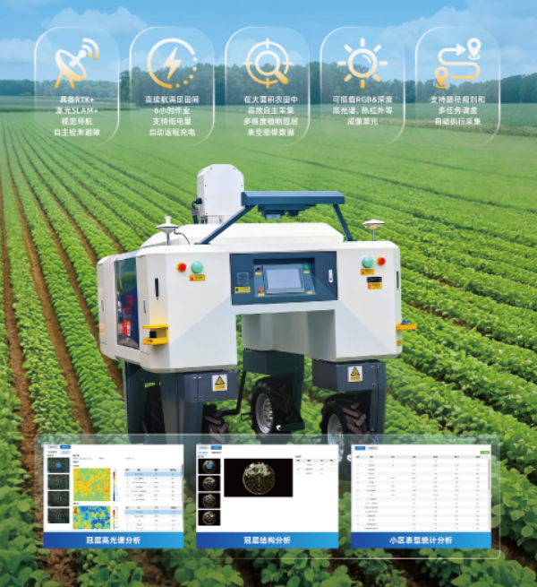 在AI+农业新装备领域,展出无人车高通量表型采集分析平台、三维表型分析系统、智能虫情测报、智慧性诱系统、气象网络监测、绿色防控等前沿装备,以人工智能技术为核心,实现农业生产的智能化感知、精准化分析、高效化作业;